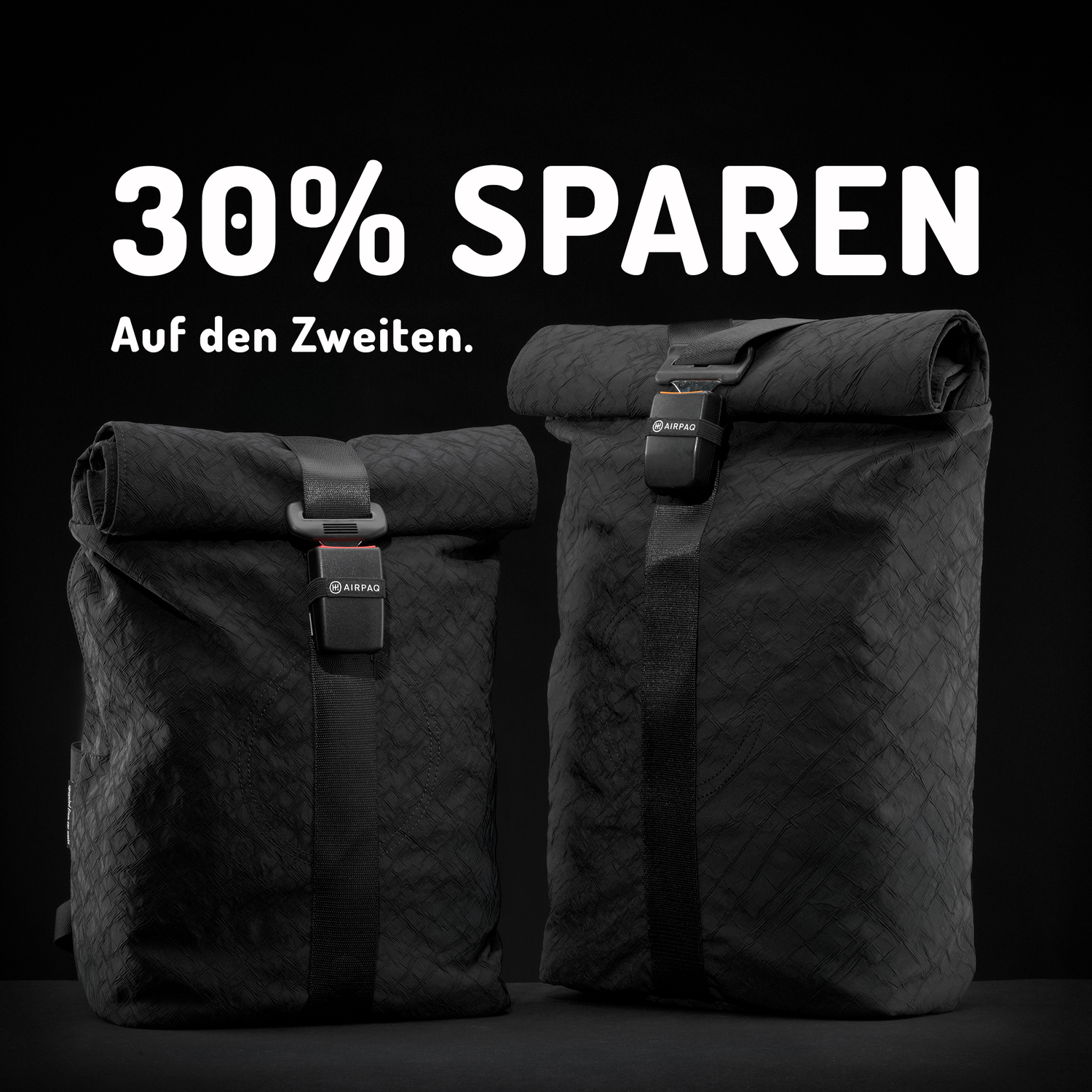 Kaufe zwei Taschen oder Rucksäcke und spare 30% auf den zweiten. Einfach gewünschte Rucksack oder Taschen Kombination in den Warenkorb legen der Rabattcode aktiviert sich automatisch.