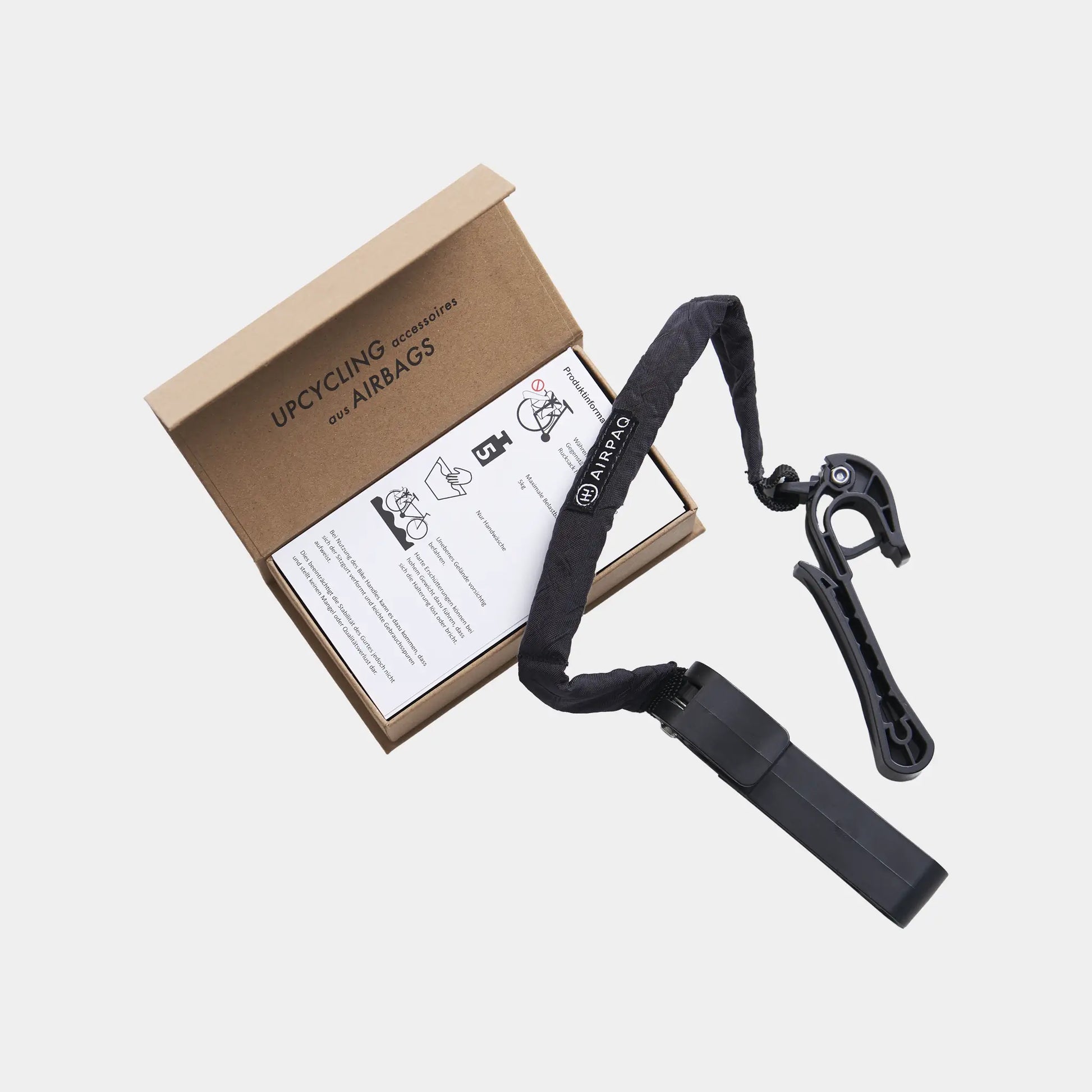 - Wickel bitte die Träger des Rucksack nach vorne und verschließe diese mit deinem Gurtschloss. So kann während deiner Fahrt nichts in die Speichen gelangen.