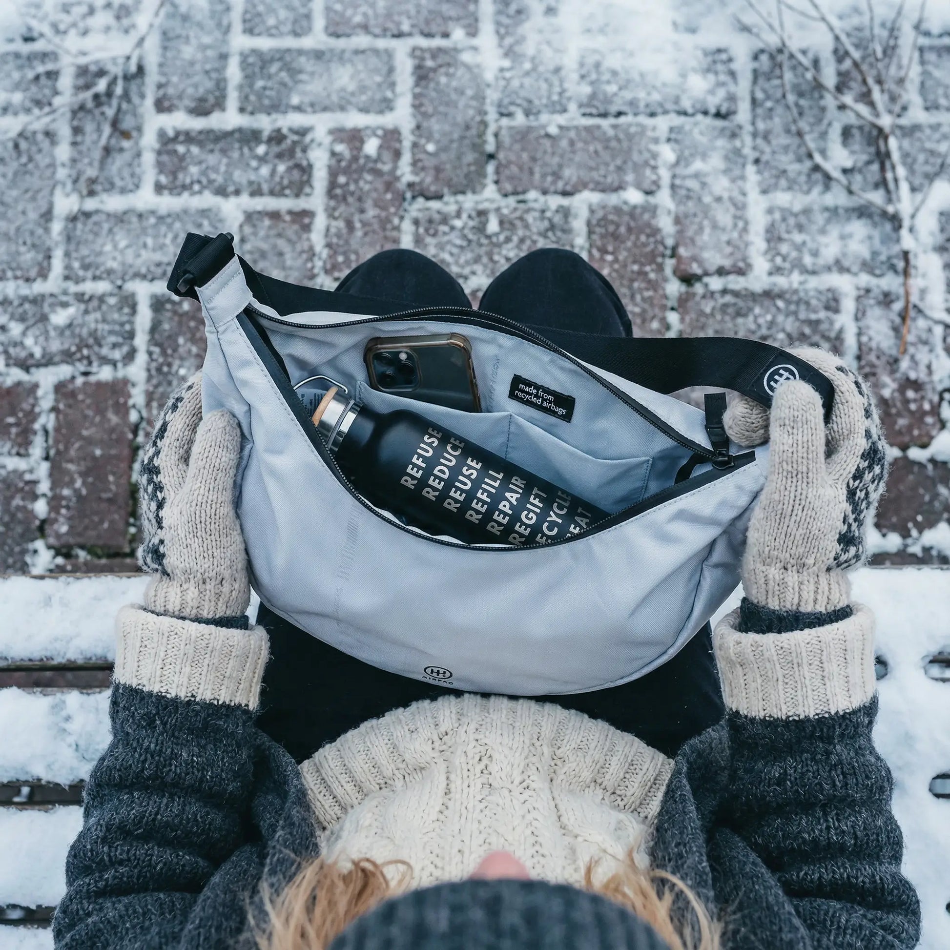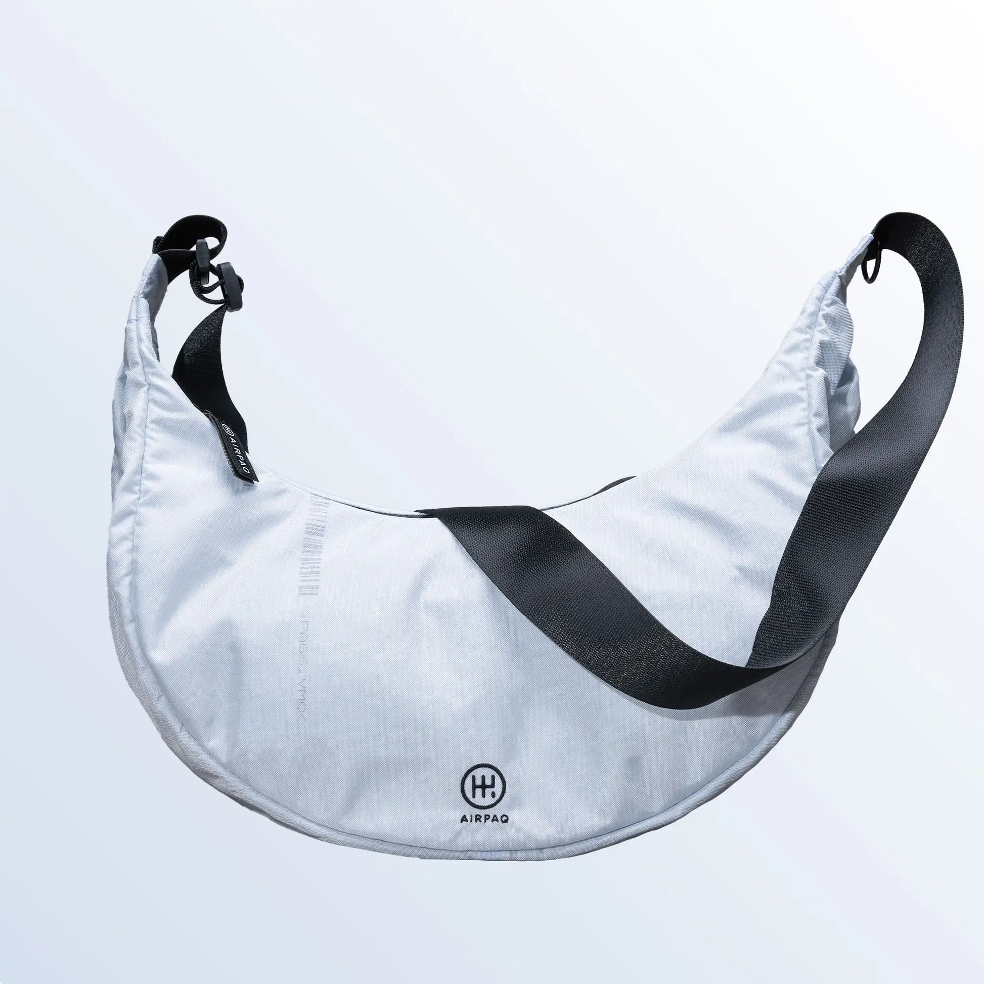 9L Halbmondtasche aus Airbags – genug Platz für alles, was dir unterwegs wichtig ist.