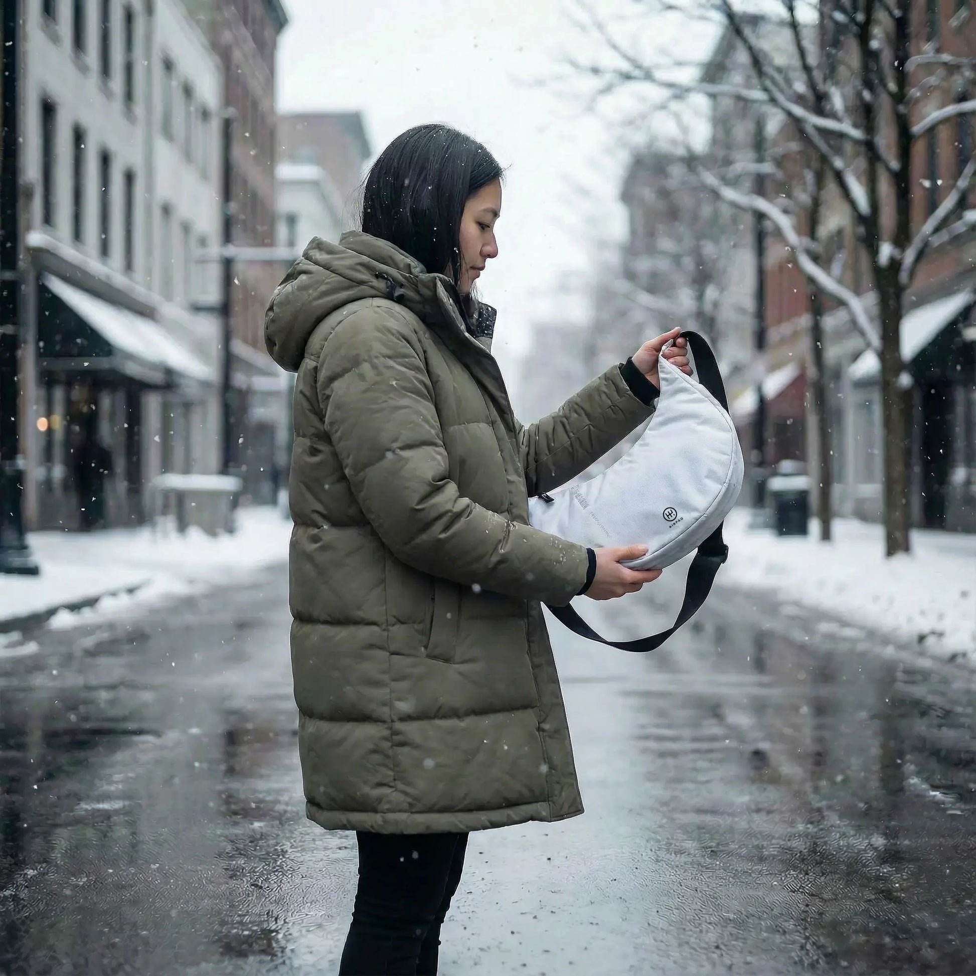 Das Material der Moonbaq ist vollständig wasserfest und hält deinen Inhalt auch bei starkem Regen trocken.
