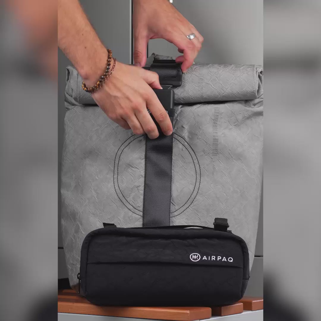 Mit gepolsterten Trägern aus Sicherheitsgurten und cleveren Fächern bietet der Airpaq-Rucksack maximalen Tragekomfort und eine durchdachte Organisation. Ob du zur Arbeit pendelst oder auf Reisen bist – du bist bestens ausgestattet und hast alles griffbereit.