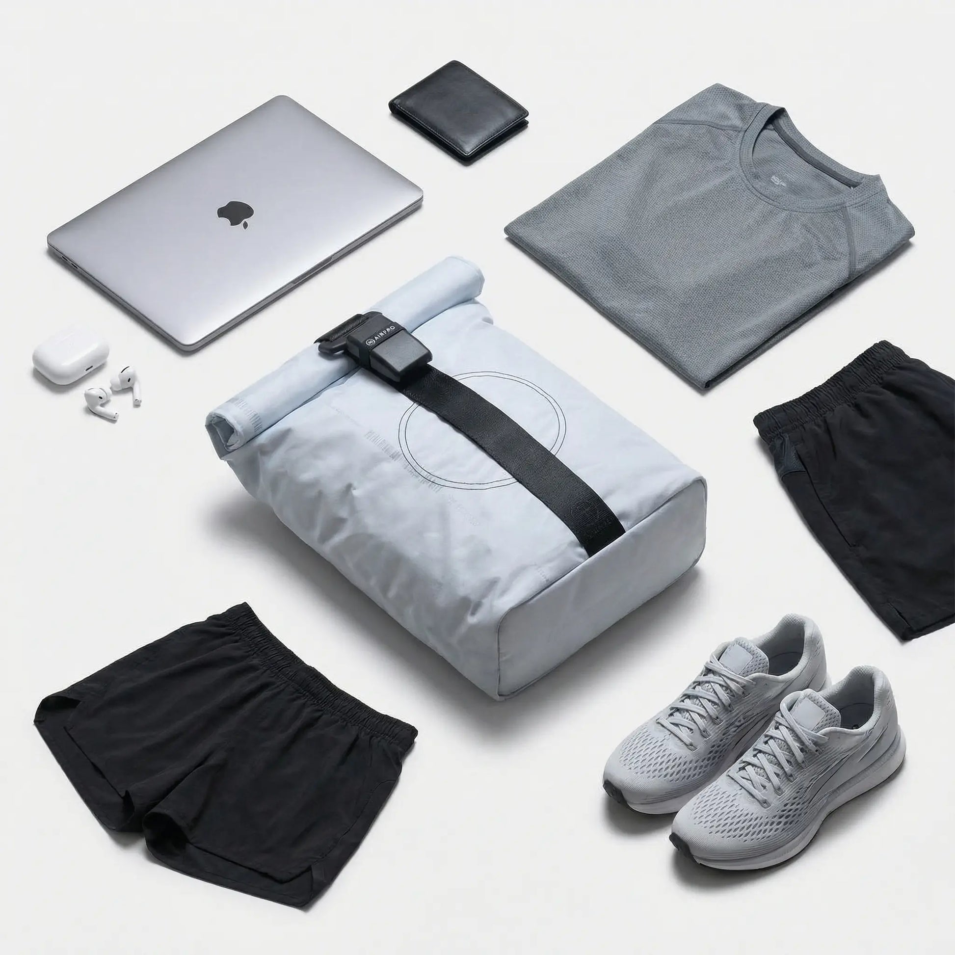 - Koffergurt: Mit dem Koffergurt lässt sich der Rolltop ganz einfach an deinem Koffer befestigen.
