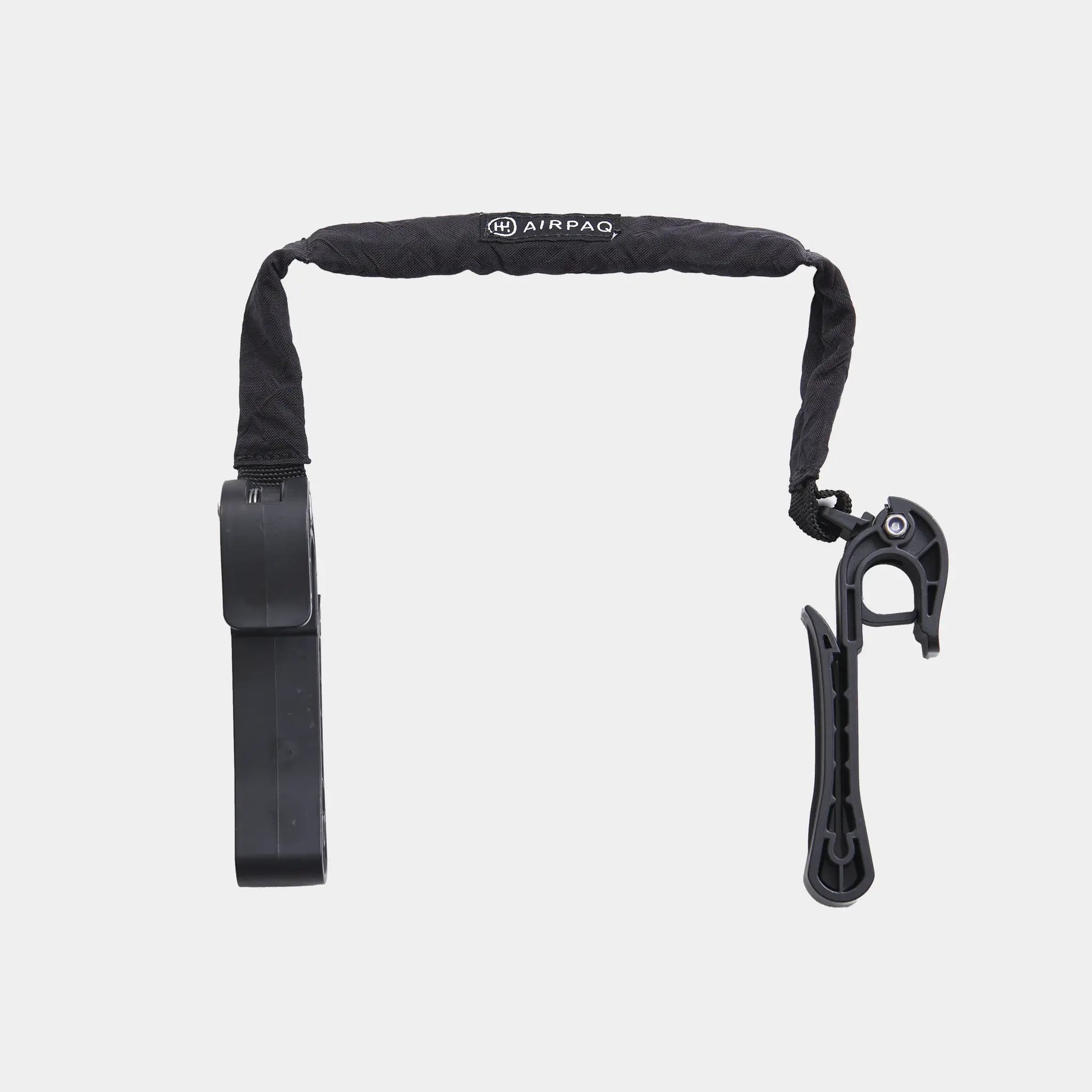 - Wickel bitte die Träger des Rucksack nach vorne und verschließe diese mit deinem Gurtschloss. So kann während deiner Fahrt nichts in die Speichen gelangen.