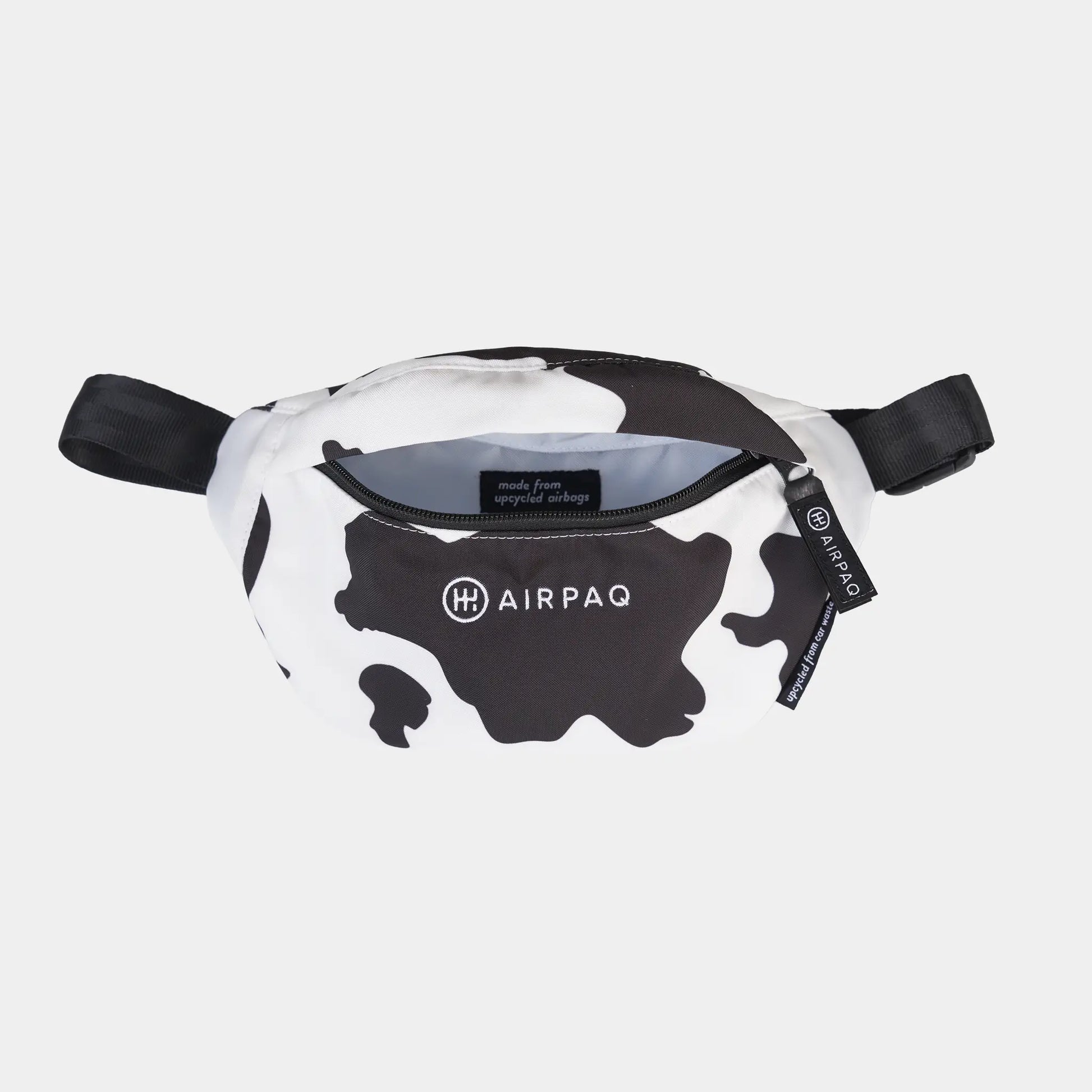 Halbmondtasche aus echten Airbags · 9 L Volumen · Jeder Kauf unterstützt den Tierschutzhof Heile Seele.