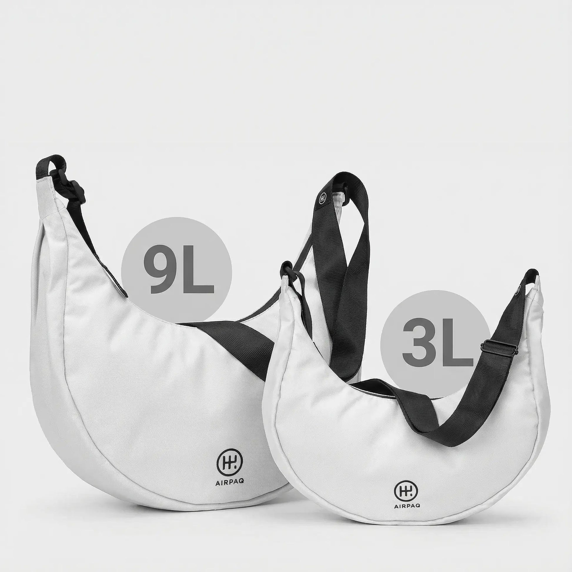 3L Halbmondtasche aus ungefärbten Airbags – So wenig dabei wie nötig und so praktisch wie möglich.