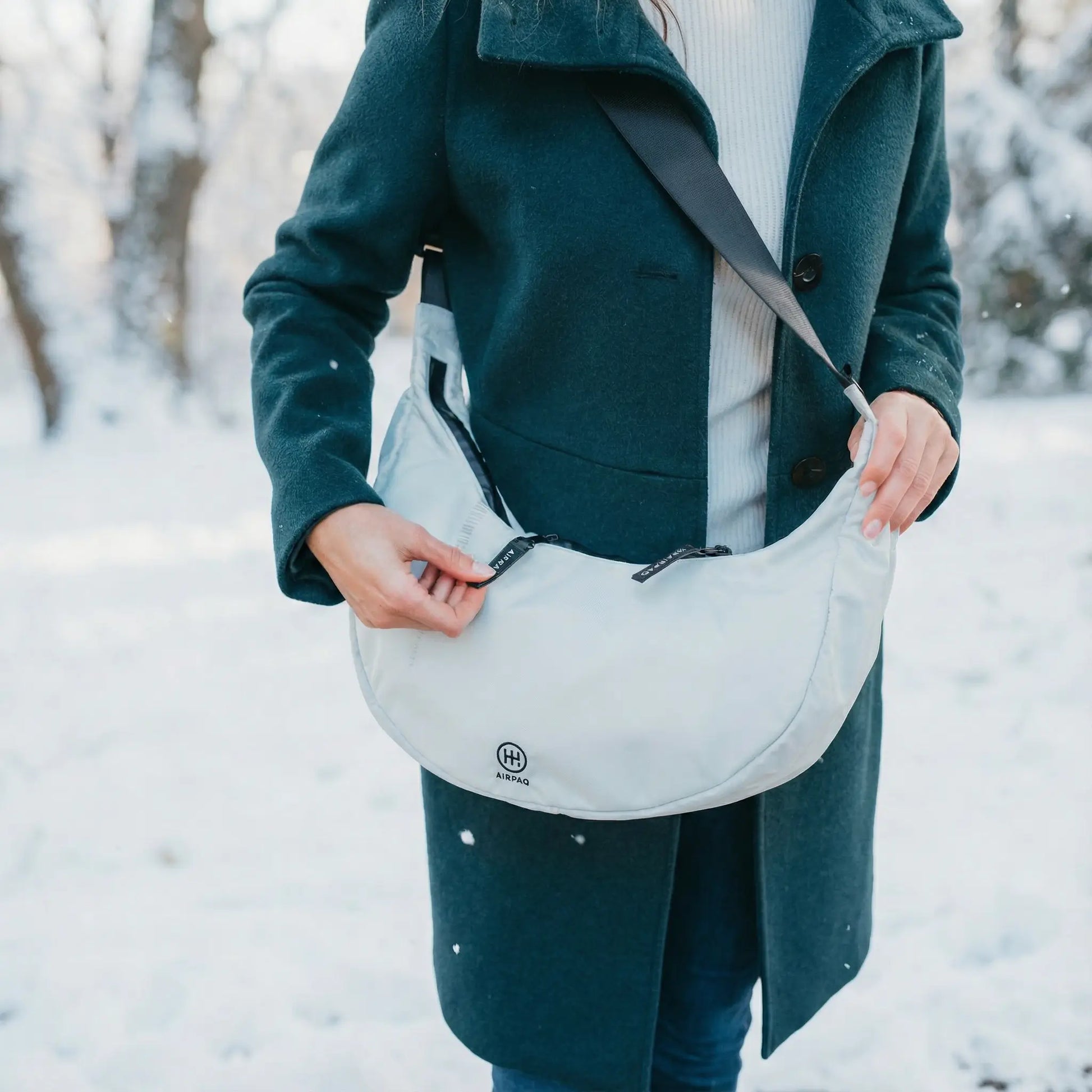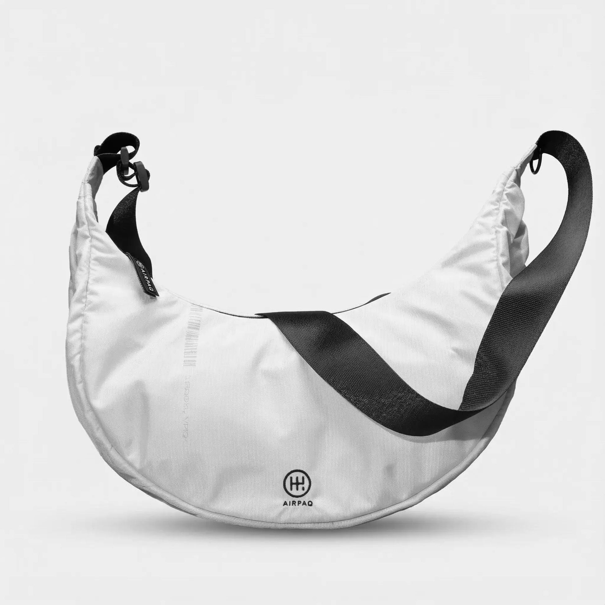 9L Halbmondtasche aus Airbags – genug Platz für alles, was dir unterwegs wichtig ist.