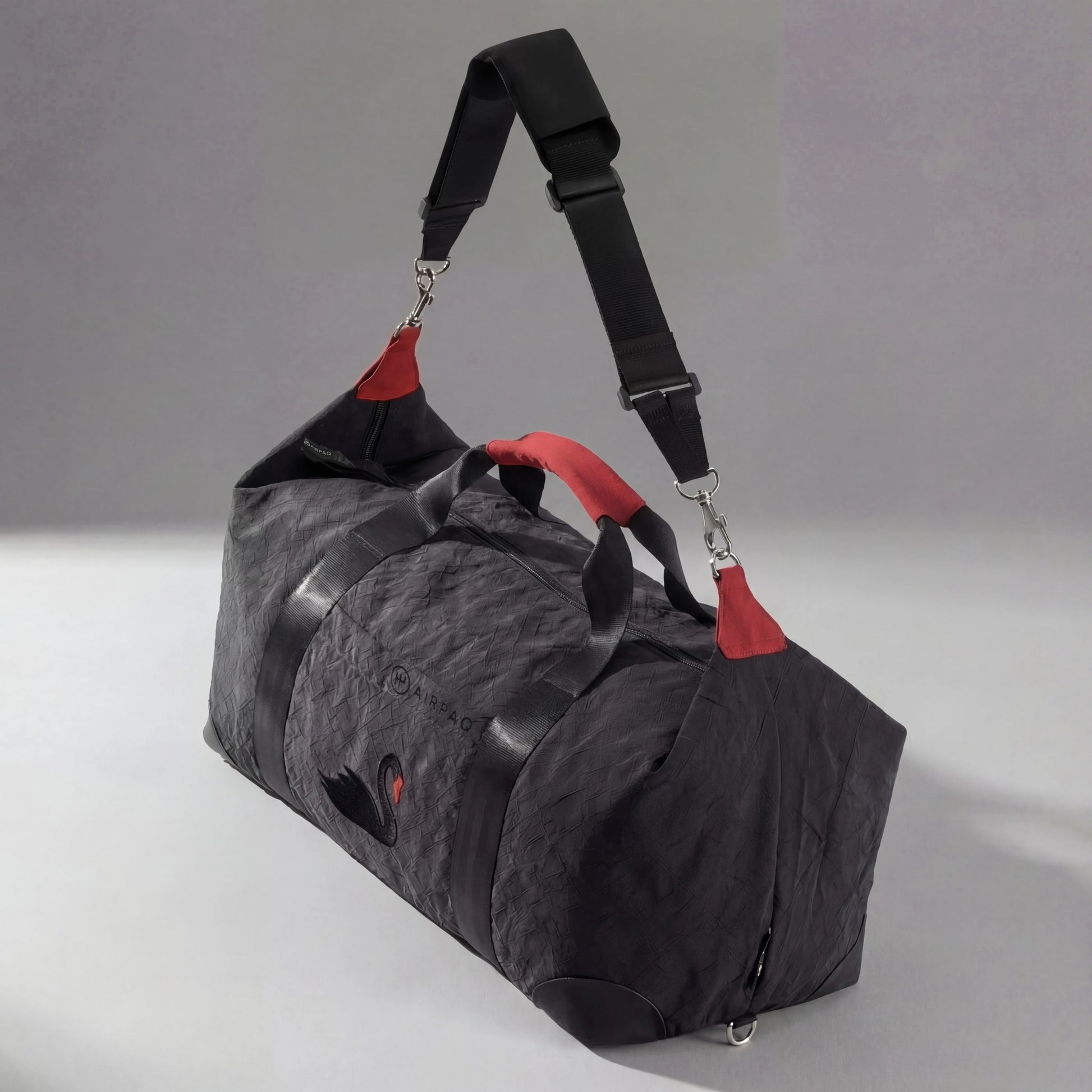 Hauptmaterial: Schwarz eingefärbter, upcycelter Airbag-Stoff – extrem reißfest, wetterbeständig und langlebig.